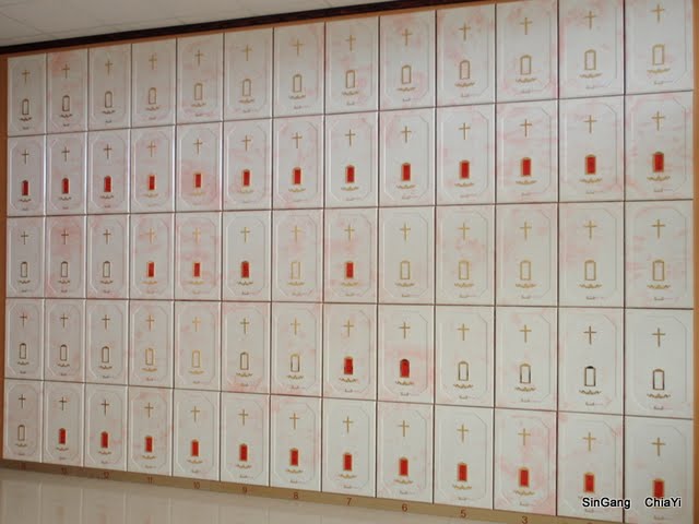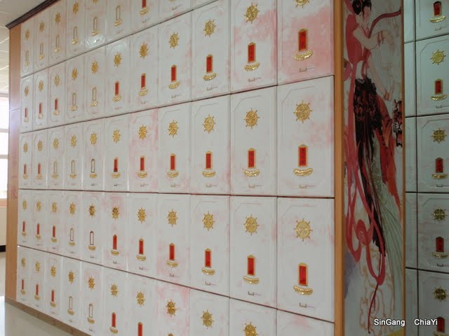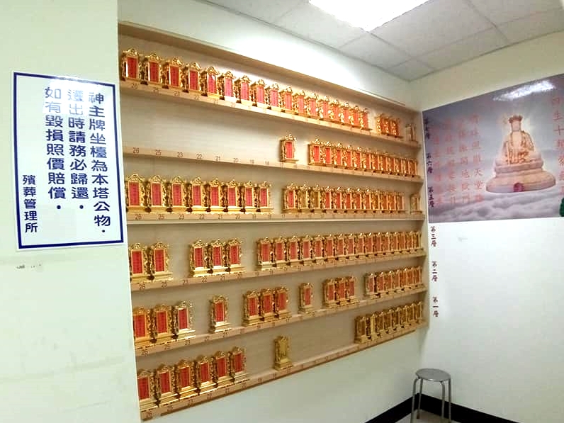 相簿說明:第二納骨堂-懷親堂為地上三層建築物,現場包含地藏王菩薩、土地公及各式納骨櫃設施。